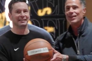 赛后湖人全体祝贺八村塁、东契奇和詹姆斯达成里程碑,而湖人总经理佩林卡也为雷迪克准备了执教生涯100胜的惊喜,为其送上了纪念篮球,雷迪克的儿子也为其送来祝贺视频。