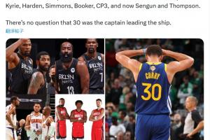 美媒谈杜兰特和库里:自从库里以及勇士队搭档之后,杜兰特再也没能重返分区决赛。在那之后,他身边也搭档过多位球星队友,却始终没能成功打进分区决赛:欧文、哈登、本·西蒙斯、德文·布克、克里斯·保罗,如今还有申京和阿门·汤普森。毫无疑问,30 号(库里)才是那支球队真正的领袖。
